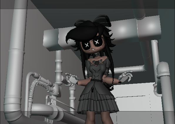 I am currently working on a horror scene inspired by the song "Daisy bell," a song that really makes the goosebumps fire. I'm aiming to make this creepy and eerie so I can challenge myself on my scene building. Here you can see some of the wireframe work and mesh basics for the subject and scene.